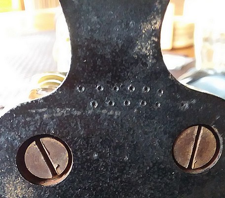 black japanned iron with a spread of 5-3/4 x 5-1/2