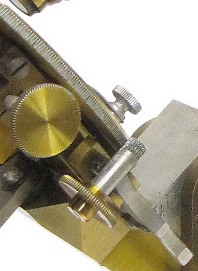 The storage case now with this microscope is a replacement. The only accessories it has remaining are those now attached to the microscope. This model was supplied either with or without a mechanical stage. This particular example was supplied only with stage clips. It also came supplied with a goniometer analyzer that mounts above the eyepiece; this is in addition to the analyzer that is mounted in the tube.