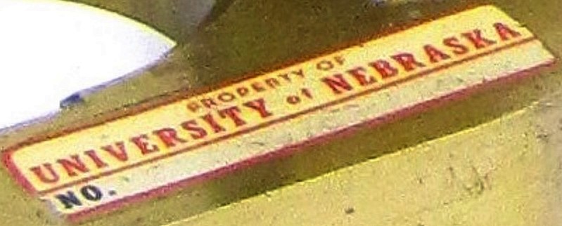 Attached to the base of the microscope is an inventory label from the University of Nebraska (founded in 1869). Evidently, this instrument was used during the earlier years of that institution.
