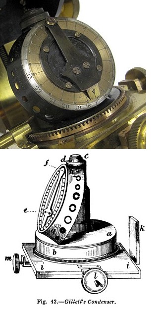 No. IA Binocular Microscope Stand (I) with two eye-pieces,coarse and fine adjustments for focussing, graduated concentric rotating stage, having 1-inch of rectangular motion, rack and screw movements, clamping lever, graduated sub-stage for holding and adjusting illuminating and polarizing apparatus, diaphragm plate, plane and concave mirrors, and WENHAM’S Binocular arrangement.