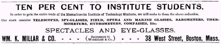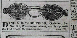Daniel Brown Widdifield was born in Boston on May 26, 1800. He began his apprenticeship first with the optician Thomas Pons and later with John Peirce after which he commenced business in his native city. In the Columbian Centinel newspaper of Boston dated June 6, 1837, appeared an advertisement promoting Daniel B. Widdifield, Optician, located at No. 141 Washington Street opposite the Old South Meeting-house. The ad shows a pair of spectacles. According to the Websters Instrument Makers Database, the firm traded under the name D. B. Widdifield from 1828 to 1837. Thereafter, from 1838 to 1868, instruments were signed D. B. Widdifield & Co. or just Widdifield & Co. It is not certain exactly when the firm went out of business. Instruments that appear to postdate 1868 are known. Besides the microscope described here, it is known that the firm sold telescopes, thermometers, and barometers and it can be assumed that a variety of other scientific instruments as sold by other mid-century opticians were available from the shop. There are no indications that the firm manufactured any of the instruments sold, although further research would be needed to confirm this. The 1860 Boston directory places Widdifield & Co. (Daniel B. Jr, and George F. Widdifield) at 148 Wash. bds 26 West Cedar and indicates an association with J. L. Millar. In the 1883 edition of The Tech, the newspaper of the Massachusetts Institute of Technology, an advertisement appeared by Wm. K. Millar & Co. located at 38 West St. in Boston offering a variety of instruments to the students. This advertisement states that this firm is the " successors to Widdifield & Co." A floor-mounted telescope signed " Widdifield & Co., Boston, assumed to be from C. 1890 (but probably pre-dating 1883), and described as a Bardou type is known to have been recently sold. In addition, another telescope signed Bardou et Fils a Paris Pour Widdifield & Co. Boston is located at the National Maritime Museum in Dublin. It is dated mid to late 19th century.